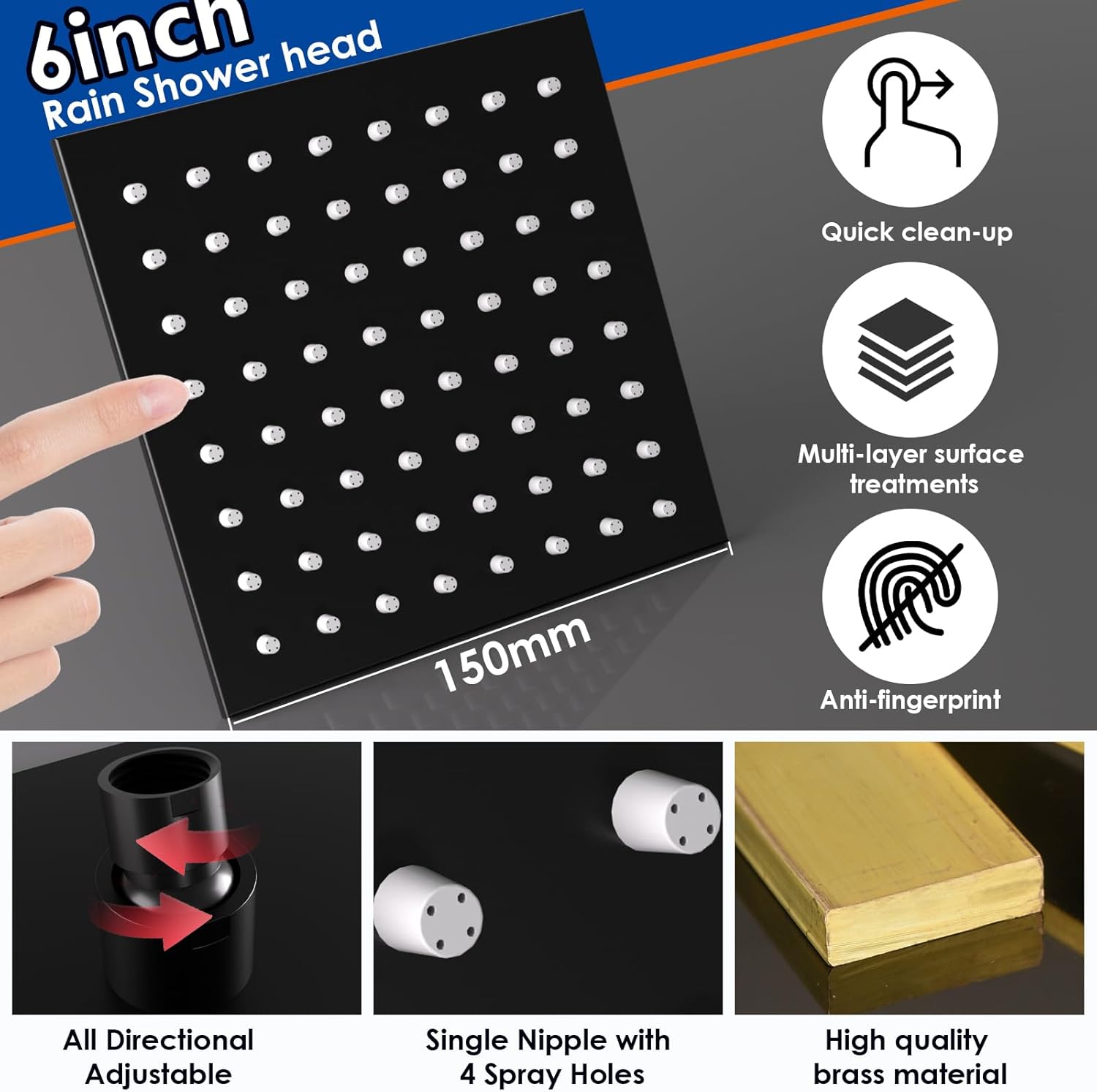| Included Components | 14*20 inch celling LED shower head, 6 inch wall shower head, Hand shower with holder, 4 functions shower valve and trim kit |